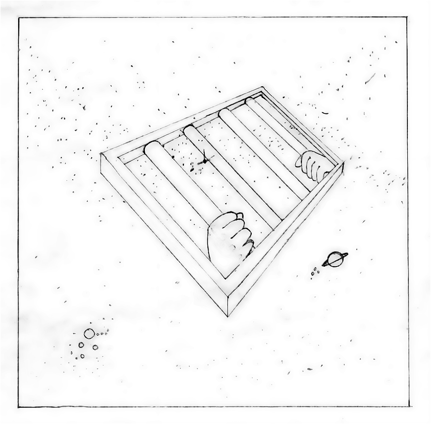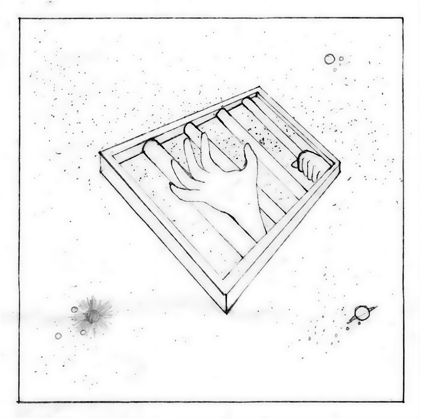 An early pencil sketch showed a person screaming while clutching the bars, another with one helpless hand reaching out in despair. Both were well received by Nicoli and the band, which inspired Wakefield to fine tune it down to the more subtle but much more powerful image of just both hands gripping the bars. This idea was ultimately chosen. "It shows a resignation to fate that the other didn't have," Wakefield recalled. "It felt like there would be no reprieve."